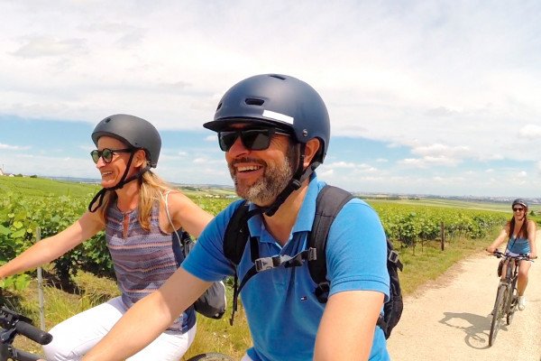 | Included | - Accompanying guide - Electric bikes, helmets, bike bags - One bottle of water per person - Optional: cellar tour, Champagne tasting |