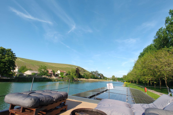 This solar House Boat tour promises you an unforgettable getaway, combining luxury and respect for the environment, while offering you a unique perspective on the beautiful Champagne vineyards.